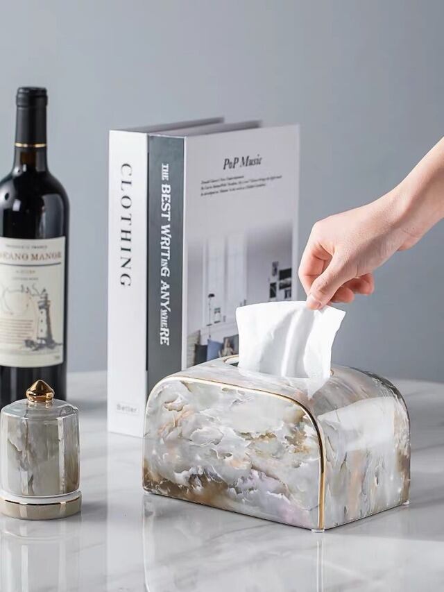 大理石柄xゴールドカラーのラグジュアリーでおしゃれなティッシュケース。